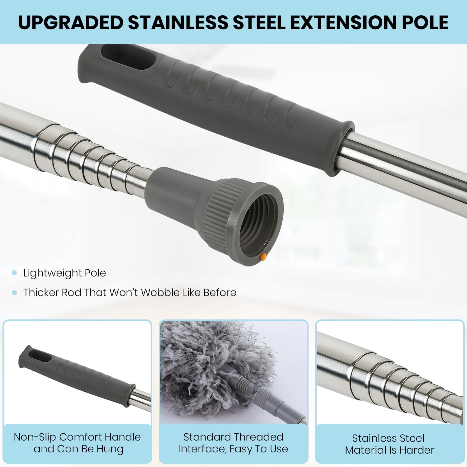 ✅ Microfiber & Stainless Steel Build – Rustproof pole + soft microfiber head.